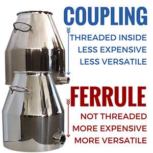 Sometimes newbies will order couplings on their premium kettle even though they don’t know what they’re for. If you don’t need your kettle to have a drain and if you’re not going to use an internal heating element, the truth is that you don’t need to spend the extra money on a coupling. If you do need a coupling, please leave a comment with your order to let us know if you’re using it for a heating element or for a drain so our welder will know where to put your coupling. Remember, couplings are not essential for distilling with a moonshine still, but you may or may not choose to have one added depending on your own personal needs.