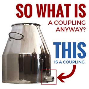 First off, let’s look at what a coupling actually is. It’s basically a small pipe that is threaded inside and welded through the wall of a premium kettle for a moonshine still. Note that we do not install couplings on standard kettles because the walls of those kettles are too thin.